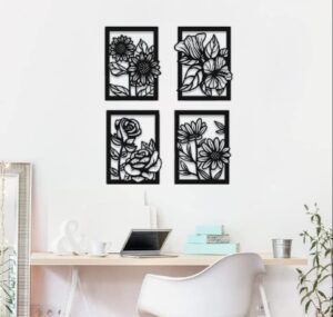 Enhance your home with this stunning set of 4 wooden floral wall art panels. Perfect for bedrooms, living rooms, and offices, these modern wall decorations bring elegance and charm to any space. Shop now for premium handcrafted wall decor!