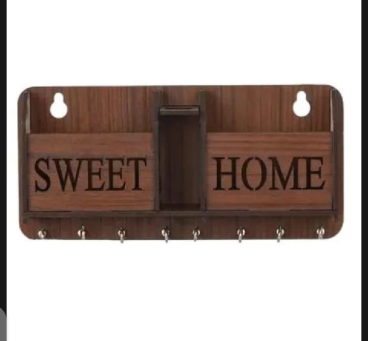 Make your home warm and welcoming with this beautifully crafted wooden key holder & wall organizer. The “Sweet Home” engraving adds a charming touch, making it perfect for your entryway, hallway, or living space. Designed for both style and functionality, this wall-mounted organizer features multiple hooks for keys, wallets, or accessories, along with compartments for mail, mobile phones, or remotes.